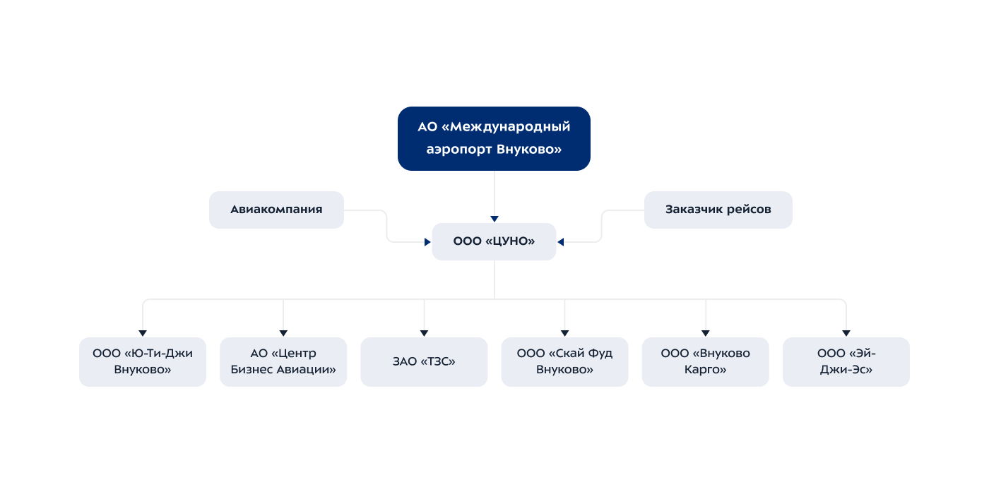 де-факто управляющая компания Внуковского аэропортового комплекса, в том числе отвечающая за начисление основных тарифов АИП и обеспечение авиационной безопасности и СПАСОП на всех объектах комплекса, сдачу в аренду производственных и офисных помещений и оборудования. |