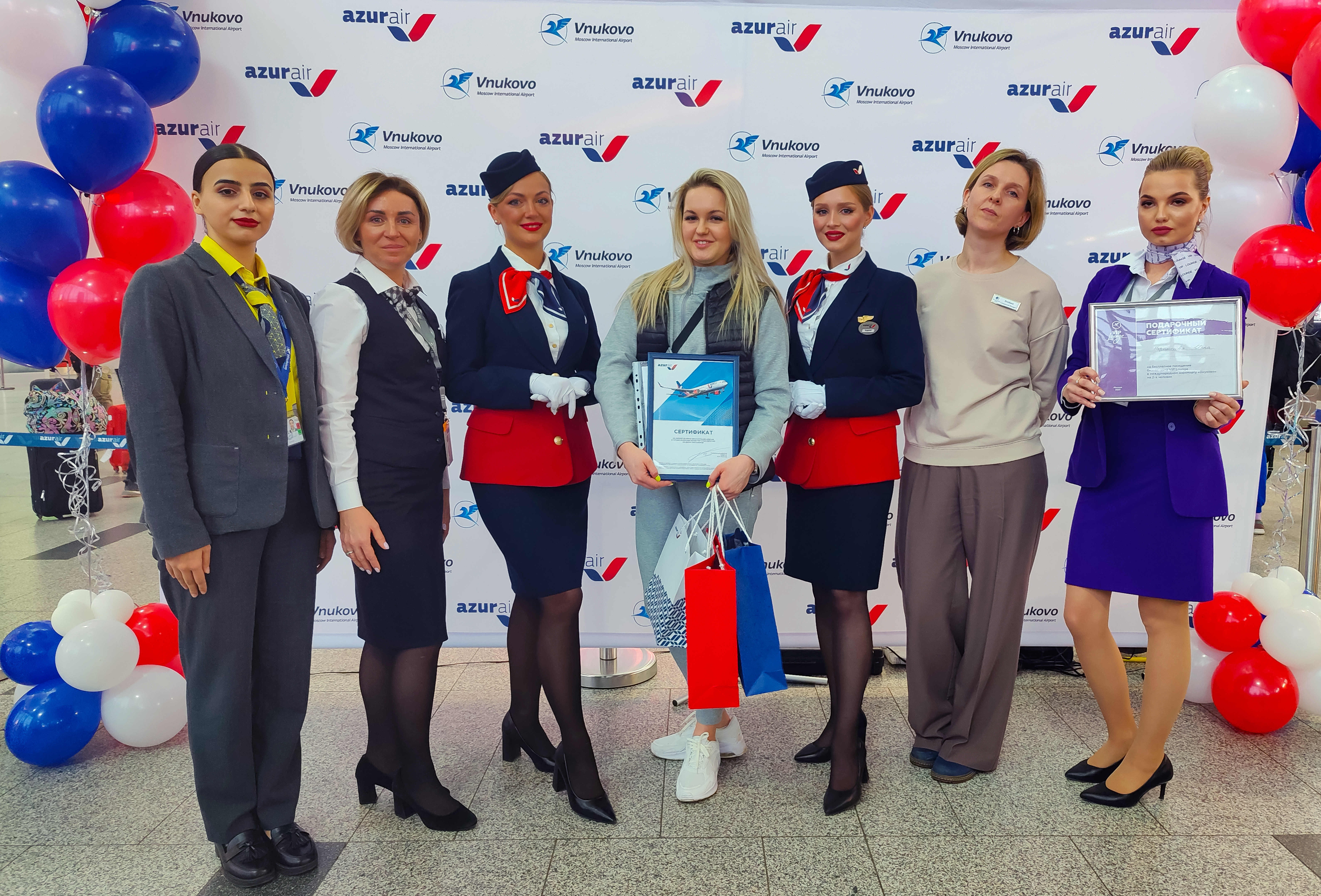 自开航以来,蓝色海岸航空公司在伏努科沃国际机场为600万乘客提供服务。2月2日,这位具有纪念意义的乘客乘坐ZF-3703航班前往普吉岛(泰王国)。他收到了纪念品:机场提供的旅行包、航空公司提供的免费飞行证书、贵宾室提供的免费进入商务休息室的机会、莫斯科-伏努科沃机场希尔顿逸林酒店提供的酒店入住证书,以及服务公司联合集团提供的纪念品。此外,所有航班的乘客都在办理登机手续的柜台前获得了甜食的欢迎。
