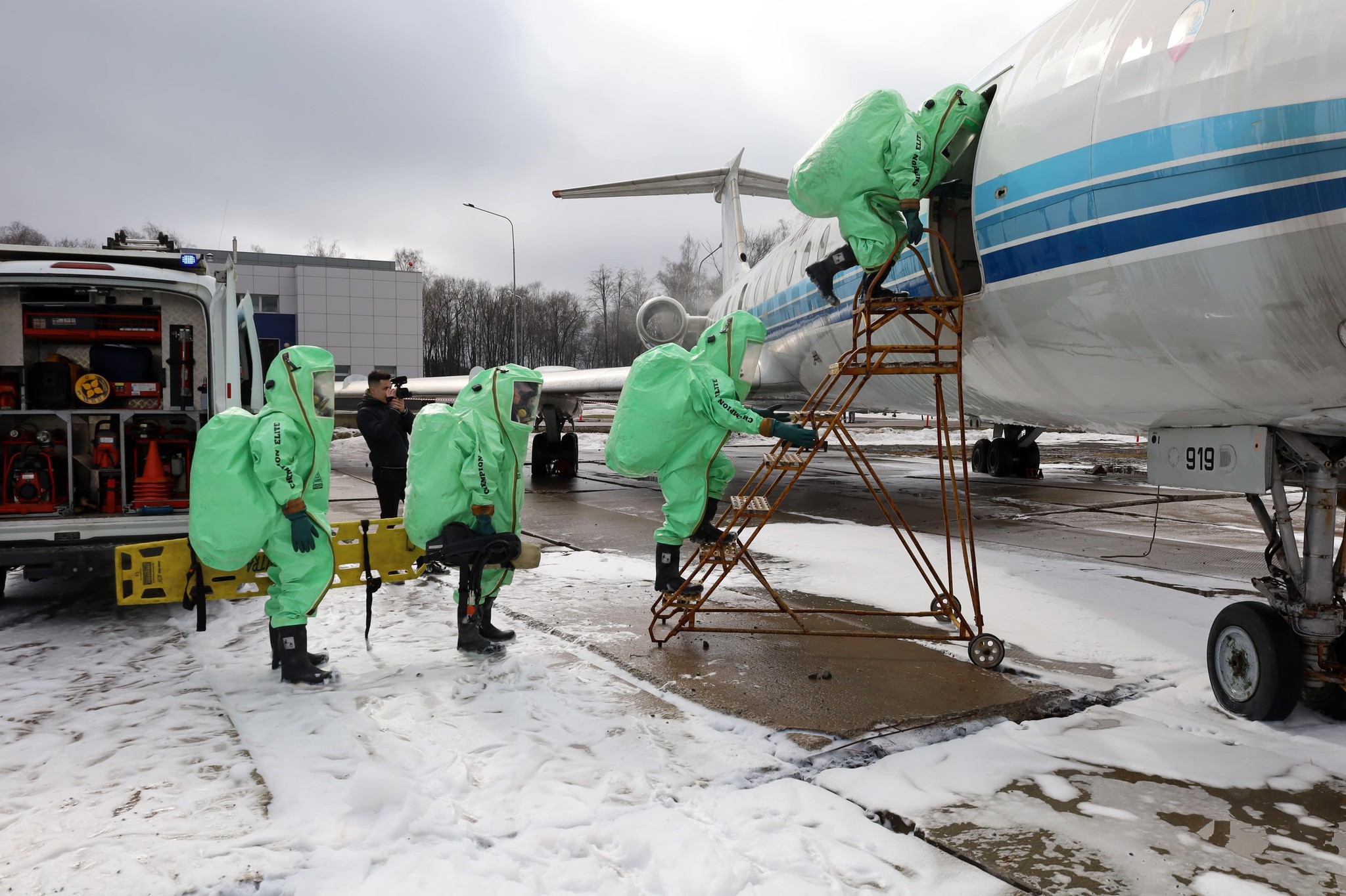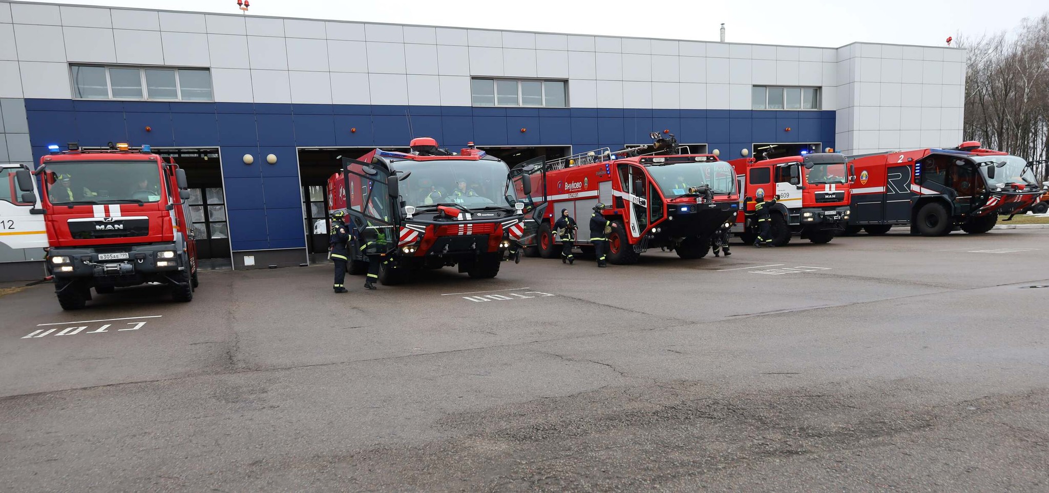 演习持续了三个小时。演习中使用了配备重型消防车(Rosenbauer Panther 6x6和Oshkosh Striker 6x6)的伏努科沃国际机场专用设备。